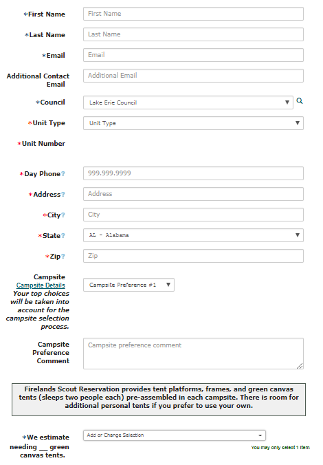Click on the image for an example of Registration Contact information collect for Cub Scout Resident Camp.
